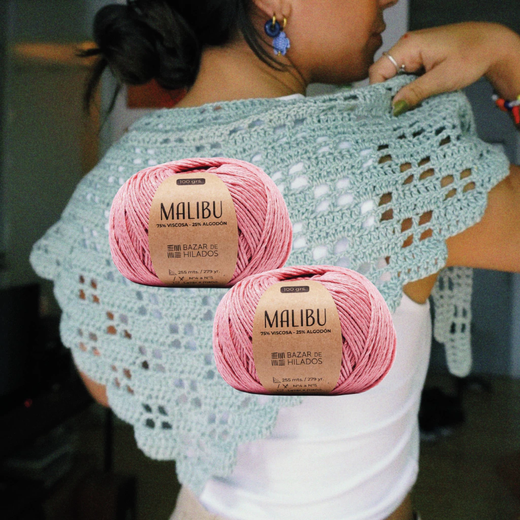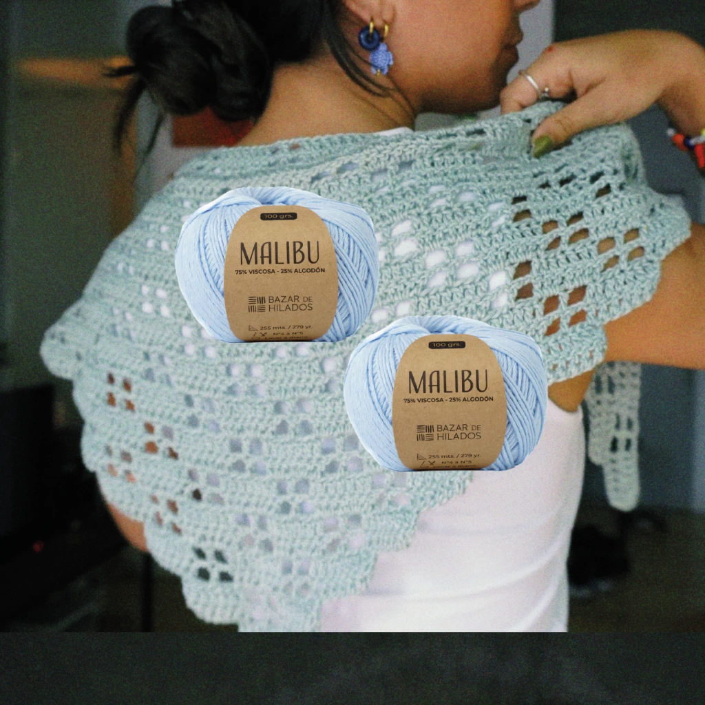Para tejer el Pañuelo Alba necesitás 2 ovillos de Malibú. Elegí tu color favorito y empezá a tejer tu primer proyecto de la serie.