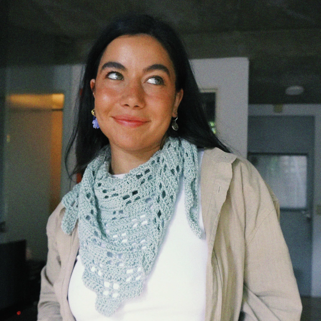 El Pañuelo Alba es el primero de los cuatro diseños creados por Magui para acompañarte en tus primeros pasos en crochet. Cada proyecto tiene tutoriales gratuitos y una guía detallada para que puedas avanzar con seguridad, incluso si recién empezás.