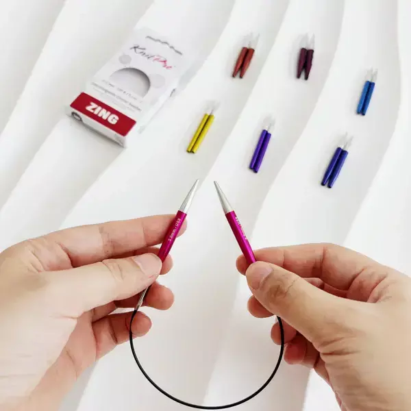 Las agujas circulares intercambiables Zing están fabricadas con aluminio liviano de alta calidad. Ofrecen un deslizamiento suave con todo tipo de hilados y evitan la fatiga en las manos. Sus puntas perfectamente afiladas las hacen ideales para todo tipo de proyectos de tejido. Son compatibles con todos los cables KnitPro, y su unión lisa junto con el cable flexible sin torceduras garantizan una experiencia de tejido fluida, sin enganches ni enredos.